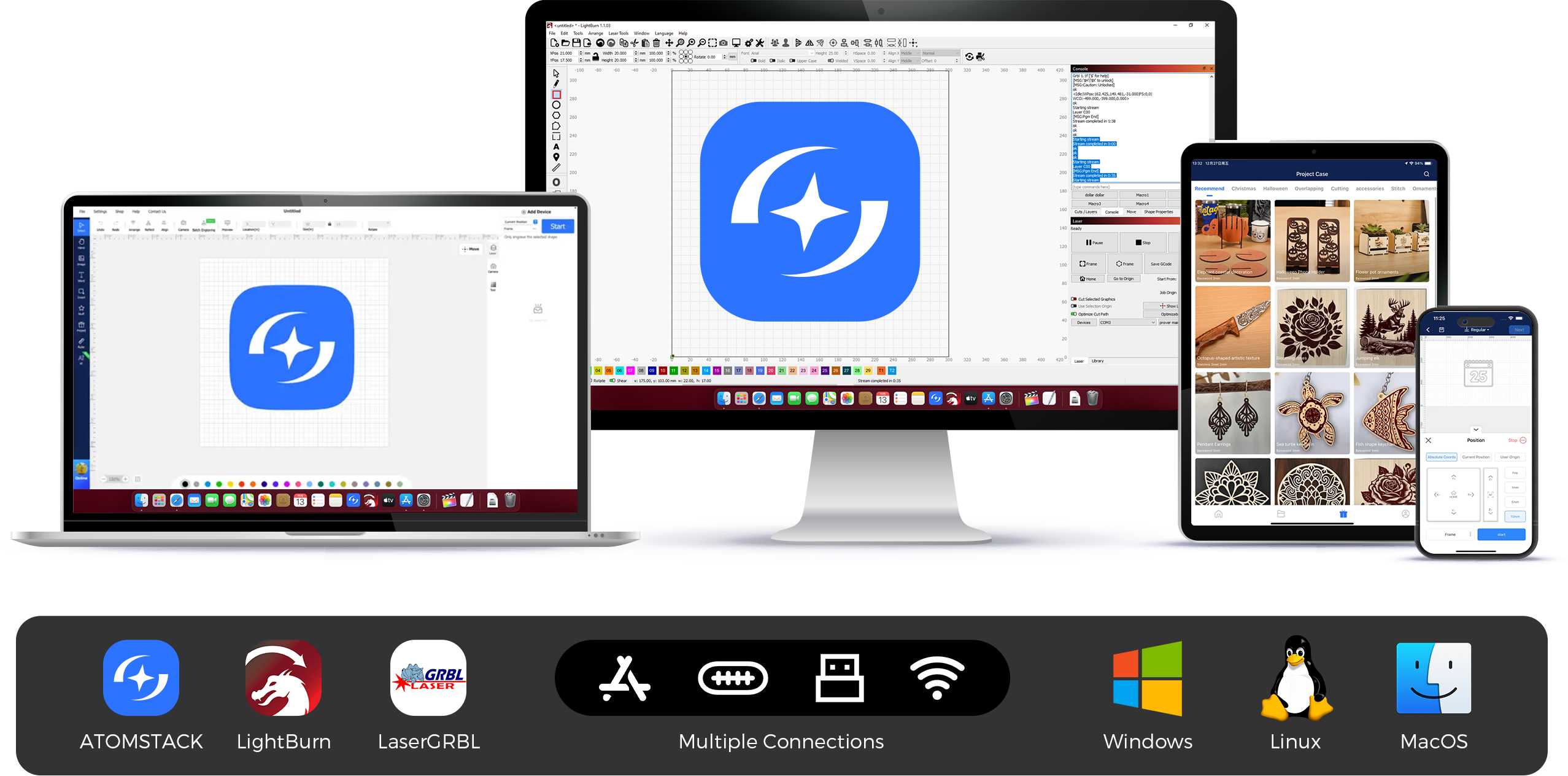 Our ATOMSTACK Studio software is designed to make your experience smooth and intuitive. It supports PC-based professional design, remote control via APP, and offline operation through the control screen. Our machine also supports widely-used software like LightBurn and LaserGRBL, so you can use it with what you’re already familiar with.